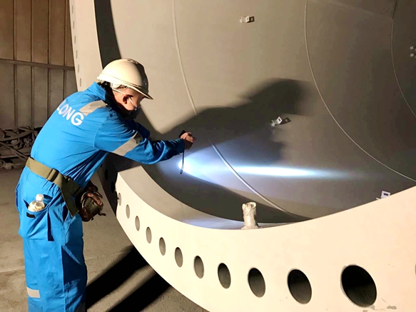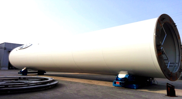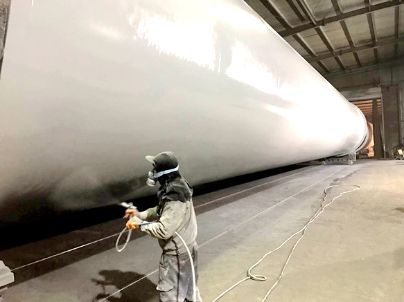 圖2:塔筒外部噴涂現(xiàn)場(chǎng)